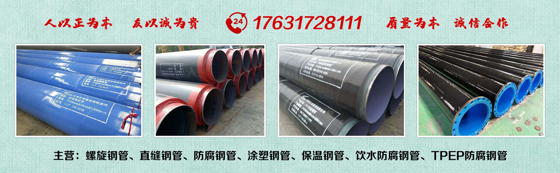 滄州友誠管業有限公司是一家專業從事生產防腐涂塑管道及管件于一體的大型企業。公司注冊資金8600萬元,位于中國管道生產基地—河北鹽山縣,近靠京滬高速、榮烏高速、黃石高速30公里,高鐵滄州西站40公里,天津國際機場、濟南遙墻機場150公里,為客戶來訪及業務發展提供了便利的交通條件。        鋼管系列:螺旋鋼管、無縫鋼管、ERW直縫焊管、JCOE埋弧焊直縫鋼管、熱鍍鋅鋼管。        涂塑系列:內外涂塑鋼管、涂塑復合鋼…… 了解更多